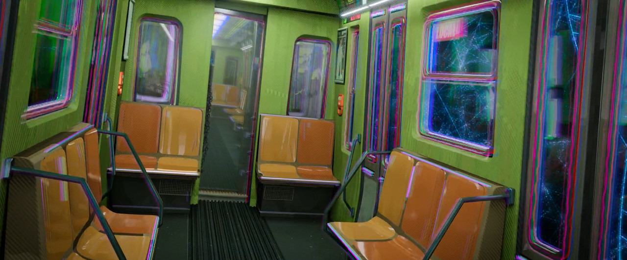 В фильме персонажи и объекты из другой мультивселенной «глючат» в нашем мире, поскольку их законное место не здесь. Но создатели фильма пытались показать переключение мультивселенных в момент такого сбоя. «На самом деле зритель видит смену сцен, каждая из которых была анимирована относительно другой камеры и другого стилевого решения. Эти наборы представляют собой другие миры, из которых могли появиться персонажи.»